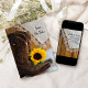 Announce your upcoming rural farm or ranch style marriage ceremony and reception with the charming Country Sunflower and Lace Western Wedding Save the Date Announcements. This casual yet classy custom rustic chic wedding keep the date announcement features a quaint floral photograph of brown leather cowboy boots, yellow sunflower blossom, vintage lace trimmed white linen handkerchief and white bridal veil with a brown barn wood background. Perfect inspo or idea for an informal barn party celebration event. Available as a printed invitation for mailing or as a digital download for easy sharing digitally online.