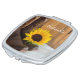 The charming Country Sunflower Western Wedding Compact Mirror makes a great personalized gift for the bride to be, bridesmaids or bridal party of your informal ranch style marriage ceremony and reception. This casual yet classy custom rustic chic wedding compact mirror features a quaint floral photograph of a pair of brown leather cowboy boots and yellow sunflower blossom with a brown barn wood and white satin background.