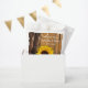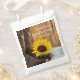 Fill these charming Country Sunflower Western Wedding Thank You Favor Bags with the party favors or small gifts for your engagement celebration, barn party bridal shower or marriage reception. These casual yet classy custom rustic chic wedding thank you bags feature a quaint floral photograph of a pair of brown leather cowboy boots and yellow sunflower blossom with a brown barn wood background.