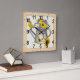 This wall clock is made from a country water can with wildflowers and a yellow bird resting on the bucket