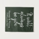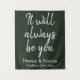 hunter green custom wedding backdrop for reception, wedding reception calligraphy back drop, wedding photo booth tapestry backdrop, wedding reception banner, it will always be you, custom wedding backdrop for ceremony, wedding photobooth rustic wedding decor, engagement party bridal shower banner, wedding head table couple backdrop, personalized names wedding back drop