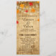 Fall wedding program for the ceremony with falling leaves and string lights over a wood background. Front and back design includes the Ceremony and Wedding Party pages. You can customize the text, move, resize or delete the images. This matches a collection in my store.