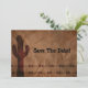 This Country Western Save The Date Announcement features a western theme complete with Cacti and barbed wire fence. Perfect for a western or country wedding!