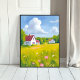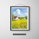 Countryside Abode Lush Green Fields Watercolor Poster