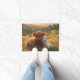 Capture the magic of the countryside with this whimsical image of a cute Highland calf and an adorable baby goat, relaxing in a field under golden light with floating bubbles.