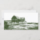 Farm house and ranch property in countryside landscape drawing in woodcut style
