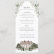 This design features a gorgeous countryside manor adorned with white floral and greenery.