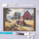 Countryside rural landscape with barn and tractor tissue paper