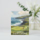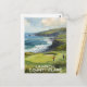 A vintage postcard depicting golf in Ireland showcases rolling green fairways by the sea, classic attire, and a nostalgic charm that captures the spirit of traditional links golf.