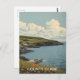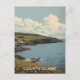A vintage-style postcard of County Clare, Ireland, captures rolling green fields, charming cottages, and the rugged beauty of the Burren in muted, nostalgic colors.
