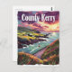 A captivating and nostalgic depiction of County Kerry, Ireland, renowned for its stunning natural landscapes and picturesque charm. The design features the rugged coastline, lush green hills, and iconic landmarks such as the Ring of Kerry and Killarney National Park. Rendered in a vintage style, the artwork evokes the serene beauty and rich heritage of County Kerry, inviting viewers to explore its scenic vistas and cultural treasures.