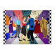 Hand drawn pop art style couple dancing retro nostalgic 1950's style.