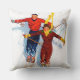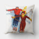 Couple Downhill Skiing Throw Pillow