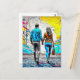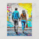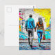 Missing you postcard with a couple holding hands done in a graffiti urban street art style.