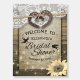 Rustic Country Style Bridal Shower / Wedding Shower Welcome Sign Foam Board Templates - Couple Old Horseshoe Heart with Rope Bow Knot and White Lace, Sunflower, String Lights and Burlap Cloth on Old Barn Wood Background.