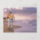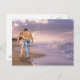 Couple in Love Walking on Beach into the Sunset. One in a series of at least seven designs, with the waves lapping the shore and a beautiful sunset in the cloudy sky. These lovely beach scenes are available on greeting / note cards. A plain image, without the couple, is on a postage stamp to match all the cards.