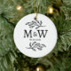 Couple Monogram Wedding Date Elegant Botanical Ceramic Ornament