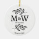 Couple Monogram Wedding Save the Date Botanical Ceramic Ornament