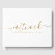 A trendy modern and elegant minimalist couple's gold name monogram in vintage serif type, contrasted with a handwritten style script font. Elegant wedding guest book for newlyweds. Blending vintage and modern styles.