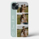 Celebrate your love story with this charming Green Couple Names 3-Photo Collage iPhone Case. Perfect for showcasing shared memories, this stylish Case-Mate case features a soft green background with space for three favorite photos, arranged in a balanced grid that beautifully captures the essence of your relationship. Personalize it with both of your names, elegantly displayed for a truly unique and meaningful touch.