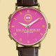 Celebrate love with this minimalist custom monogram watch, featuring a soft pink background and elegant yellow Roman numerals. This personalized timepiece is designed for couples who appreciate modern simplicity and timeless elegance. Customizable with your names or initials, it makes an ideal gift for weddings, anniversaries, engagements, or special occasions. The sleek and stylish design ensures versatility, making it a perfect everyday accessory or a sentimental keepsake.