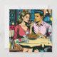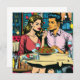 A couple on a date at an Italian restaurant sharing a plate of spaghetti. Cute comic book style cartoon pop art ai.
