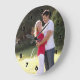 Great price for a very nice product. Arrived a day early - unheard of these days. The outside gold area has a little more orange tone to it than shown in the picture. Great packing so product can't get damaged. I used the same packing to forward the clock to my brother and sister-on-law for the 50th wedding anniversary. Printing was just as expected - lovely!