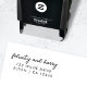 Simple, stylish wedding RSVP return address stamp in a modern minimalist design style with a trendy script typography in classic black and white, with an informal handwriting style font. The text can easily be personalized for a unique one of a kind design for your special day. If you need any help customizing this product, please contact me using the message button below and I'll be happy to help.