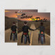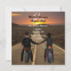 This unique Save the Date invitation features beautiful sunset scenery with a boy and girl couple on motorcycles holding hands. The couple has brown hair. Other hair color options are available upon request! Perfect for a biker couple! Easily customize this Save the Date with all of the details for your wedding.