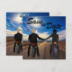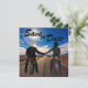 This unique Save the Date invitation features beautiful sunny highway scenery with a boy and girl couple on motorcycles holding hands. The boy is blond and the girl is a brunette. Other hair color options are available upon request! Perfect for a biker couple! Easily customize this Save the Date with all of the details for your wedding.
