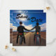 This unique Save the Date invitation features beautiful sunny highway scenery with a boy and girl couple on motorcycles holding hands. The couple has brown hair. Other hair color options are available upon request! Perfect for a biker couple! Easily customize this Save the Date with all of the details for your wedding.