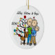 A pretty round ceramic keepsake Christmas holiday ornament features a stick figure couple with a baby boy in a blue blanket and a dog standing in front of the decorated Christmas tree with areas you can easily customize with names and date to the current year! This beautiful holiday keepsake ornament makes a great gift for anyone who had a new baby boy in the current year!
