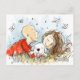 This personalized postcard offers a cute illustration of a bald man, a white puppy and a brunette woman. This is a cute design to send "we miss you" or "we love you" messages to your beloved ones.