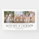 Welcome guests to a stylish couples wedding shower with an elegant custom 3 photo collage party banner. Pictures and all text are simple to personalize. (IMAGE PLACEMENT TIP: An easy way to center a photo exactly how you want is to crop it before uploading to the Zazzle website.) The modern minimalist black and white design features three images of your choice, chic handwritten style script calligraphy, and elegant vintage typography. This couples bridal shower welcome sign is a stylish way to share engagement pictures as a part of your special day celebration decorations. Congratulations to the bride and groom!