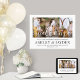 Welcome guests to a stylish couples wedding shower with an elegant custom 3 photo collage 18"x24" poster. Pictures and all text are simple to personalize. (IMAGE PLACEMENT TIP: An easy way to center a photo exactly how you want is to crop it before uploading to the Zazzle website.) The modern minimalist black and white design features three images of your choice, chic handwritten style script calligraphy, and elegant vintage typography. This couples bridal shower welcome sign is a stylish way to share engagement pictures as a part of your special day celebration decorations. Congratulations to the bride and groom!