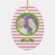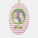 Couple's first/1st Christmas together wedding photo ornament. A lovely pink and white striped design with your photo in a green circle.