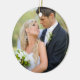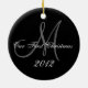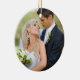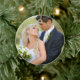 Beautiful, Simple Couple's First Christmas Ornament with Photo on front and monogram initial on the back. Elke Clarke©. For newlyweds and parents of newly married couples as a keepsake of your wedding day. White snowflakes and and opaque band along with your wedding photo make up this stylish design. For more editing options, including making your photo fit and changing the background colors select "customize it" for the edit menu.