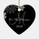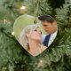 Heart-shaped Christmas Ornament. Simple Couple's First Christmas Ornament with Photo on front and monogram initial on the back with white snowflakes. Elke Clarke©. For newlyweds and parents of newly married couples as a keepsake of your wedding day. White snowflakes and and opaque band along with your wedding photo make up this stylish design. For more editing options, including making your photo fit and changing the background colors select "customize it" for the edit menu.