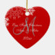 Red and gray heart-shaped Christmas Ornament. Simple Couple's First Christmas Ornament with Photo on front and monogram initial on the back with white snowflakes. Elke Clarke©. For newlyweds and parents of newly married couples as a keepsake of your wedding day. White snowflakes along with your wedding photo make up this stylish design. For more editing options, including making your photo fit, select "customize it" for the edit menu.
