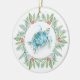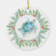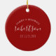 A perfect gift for newlyweds or anniversary weddings, this elegant acrylic Christmas ornament features your names and wedding date on the back with a replica of my original sea turtle art encircled by a holly and red berries. Your last name set in a fun hand lettered typography over a solid red background. Customize this round beach ornament with your names to create a unique keepsake for a Christmas wedding gift. To see more Florida Christmas designs by Victoria Grigaliunas visit www.zazzle.com/dotellabelle