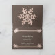 A simple, yet elegant design to send your friends and family holiday greetings as Mr. & Mrs. A gorgeous, rich shade of cedar wood brown is the background for a beautiful flourish of holiday greetings. A few snowflakes, a bit of soft pink lace and a scattering of flowers make this a design that stands out. Perfect for your very first Christmas as husband and wife!