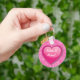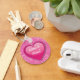 Carry the love you share everywhere you go. A bulging heart highlights your names against a pink swirled background. Great gift for Valentine's Day or any occasion to express your love. Available in alternate color with matching products.