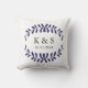 Simple, elegant, modern and trendy leaves or wreath pattern or design for throw pillow or cushion with a Custom monogram or initials in a preppy font. Add the bride and groom's personalized monogram initials and custom wedding date to the pillow. Perfect for wedding favor gifts, Valentine's Day, anniversary gift, couples, sweethearts, engagement, party gift or any occasion! Click the "Customize It" button to add your own custom text. Choose your own font and colors to make it your own and create the look you want. Colours - white background with Navy Blue wreath design and black text. This trendy and chic, romantic design will enhance any home decor, living room, sofa, bedroom, or room.