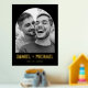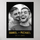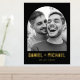 Poster featuring your custom photo inside a black or custom color arch frame with the names and date in a gold or silver foil modern sans serif below.