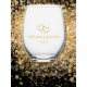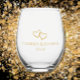 Couple's Names Date Simple Stylish Hearts Wedding Stemless Wine Glass