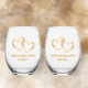 Couples Names Elegant Golden Intertwined Hearts Stemless Wine Glass