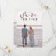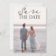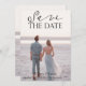 Ideal for showing family and friends one's engagement photos, with a combination of serif and script fonts, this "Save The Date" invitation features a photo the couple underneath black text. The back of the card features the same photo of the couple (without the text).