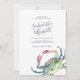 Set on a crisp white background, this design features your names in modern handwritten script and event details in a timeless charcoal gray font. A bold blue crab, hand-painted in vibrant reds, blues, and greens, brings nautical flair to the front, while a sophisticated navy reverse side completes the look.