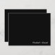 Personalized note card featuring script typography. The note card is completely black. In order to write on your card you would need to use a white or metallic gold/silver colored pen