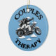 A couple riding a motorcycle in the clouds, with "Couples Therapy" text. T-shirts, sweats, novelty gift swag.